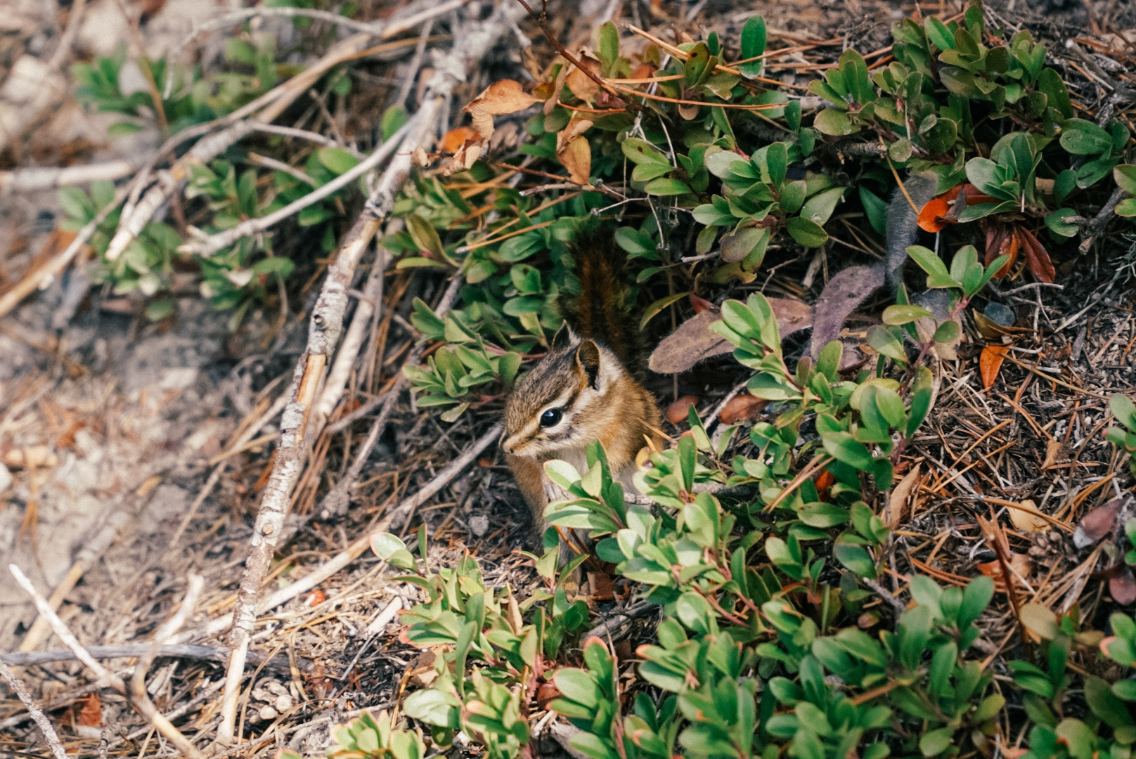 A chipmunk getting ready for wintertime